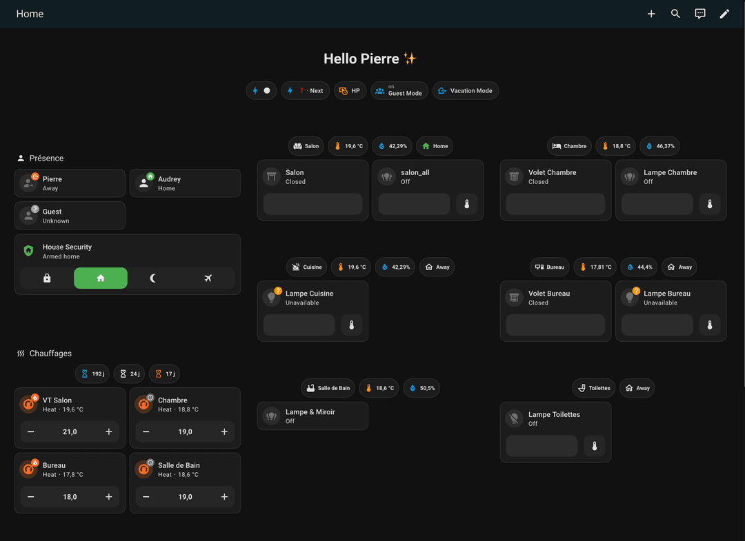Durant mon stage de seconde année, j'ai été chargé de faire de la veille technologique sur l'intégration des cartes éléctroniques dans un environnement domotique. La première piste a été d'intégrer la carte au travers d'HomeAssistant. Pour ce faire, j'ai réalisé une proof of concept d'intégration qui va fetch les données du serveur via un call api, pour ensuite les afficher dans l'interface HomeAssistant. Par la suite, je me suis renseigné sur les possibilités d'intégration dans HomeKit ou Google Home.